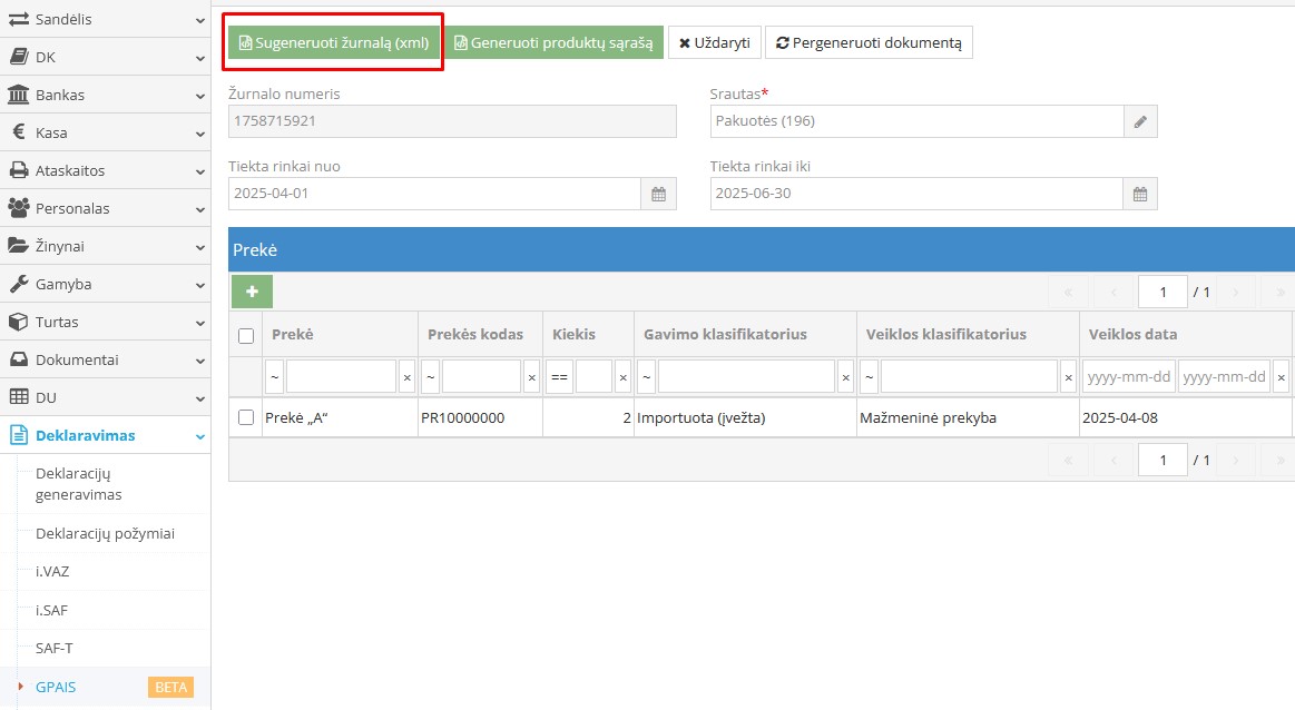 • kaip suformuoti gpais žurnalą naudojant apskaitos programą