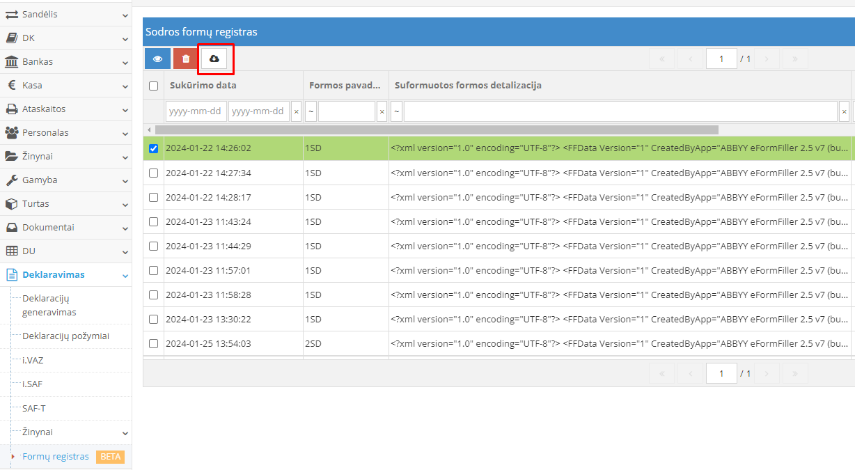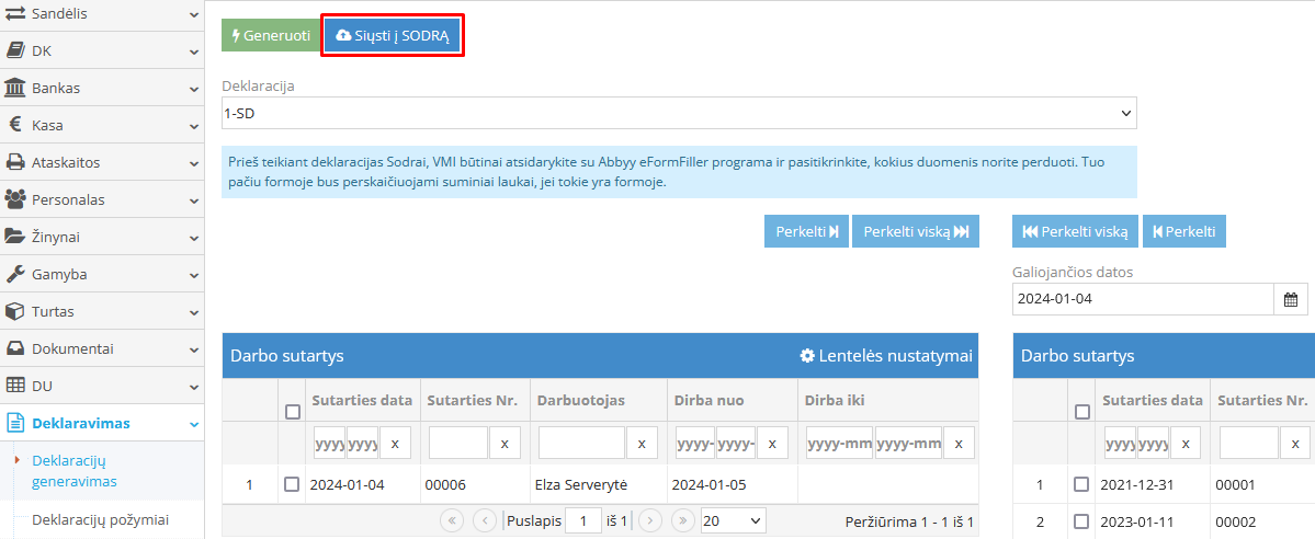 3. Deklaracija siunčiama į SODRA, kuri išsaugoma skiltyje „Formos ir šablonai (Ruošiniai)“