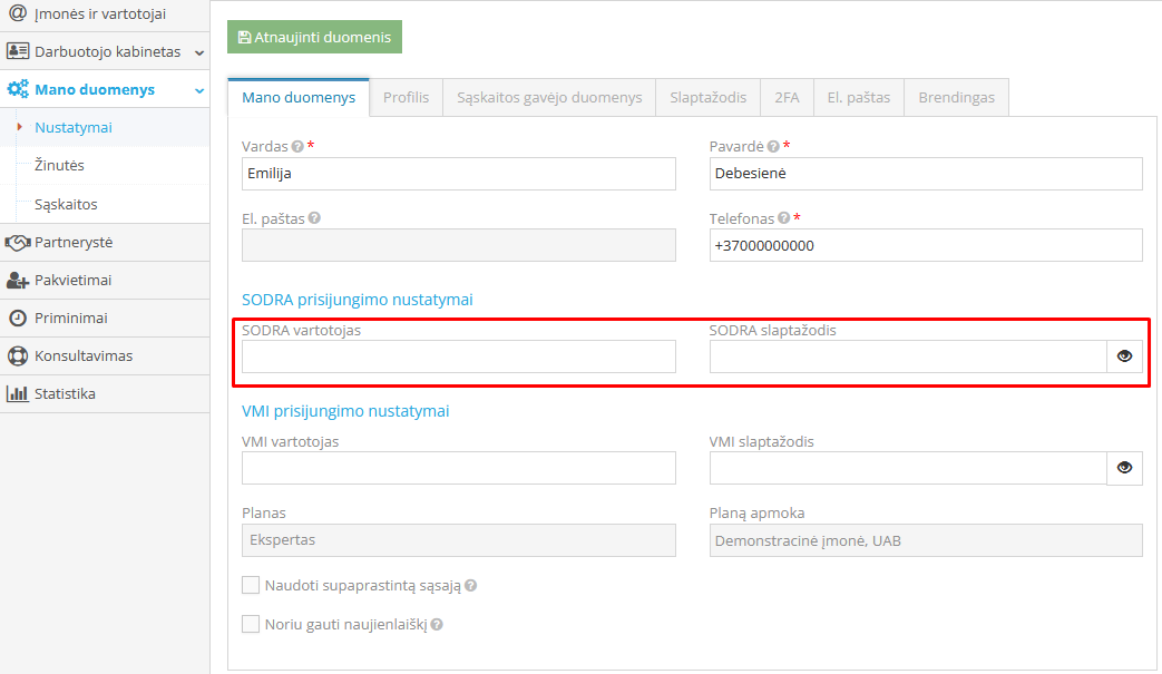 • kaip nustatyti sodros prisijungimo duomenis apskaitos sistemoje